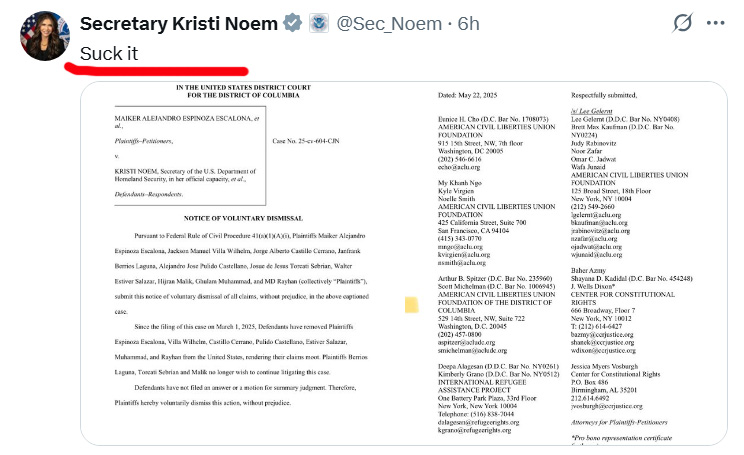 — Secretary Kristi Noem (@Sec_Noem) May 22, 2025
