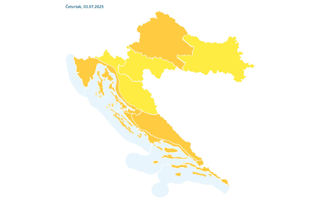 Za sjeverozapad Hrvatske i dio uz obalu izdan je narančasti meteo alarm, dok je ostatak Hrvatske u žutom.