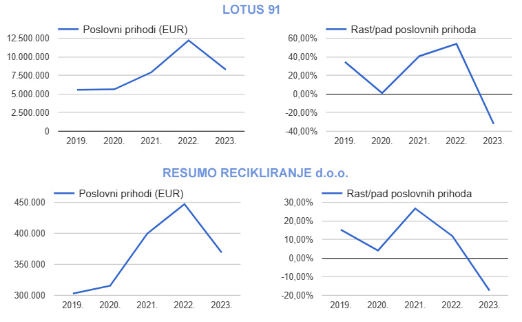 U tom mjestu mnogo je firmi koje su se bavile ili se bave otpadom. Jedna je Resumo recikliranje d.o.o.. Osim po mjestu i identičnom rastu i padu prihoda navodno Lotus 91 d.o.o. i Resumo recikliranje d.o.o. kao i činjenici da se bave otpadom nemaju sličnosti.