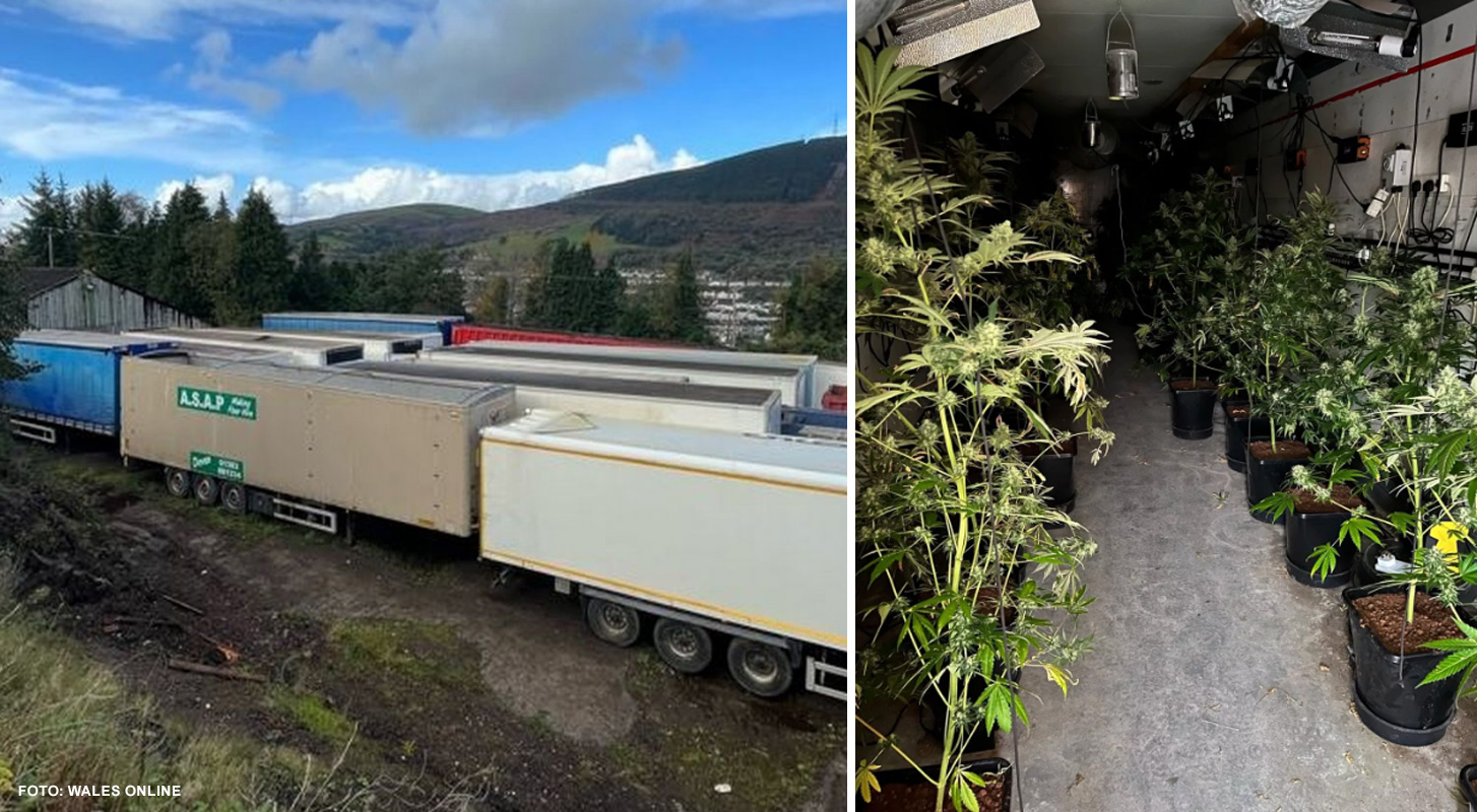 Devet od dvanaest prikolica korišteno je za uzgoj i sušenje kanabisa. U njima su pronađene 102 biljke u različitim fazama rasta te 6 kilograma već ubranog kanabisa. Procijenjena ulična vrijednost: do £85,000 za biljke i £63,000 za ubrane količine.