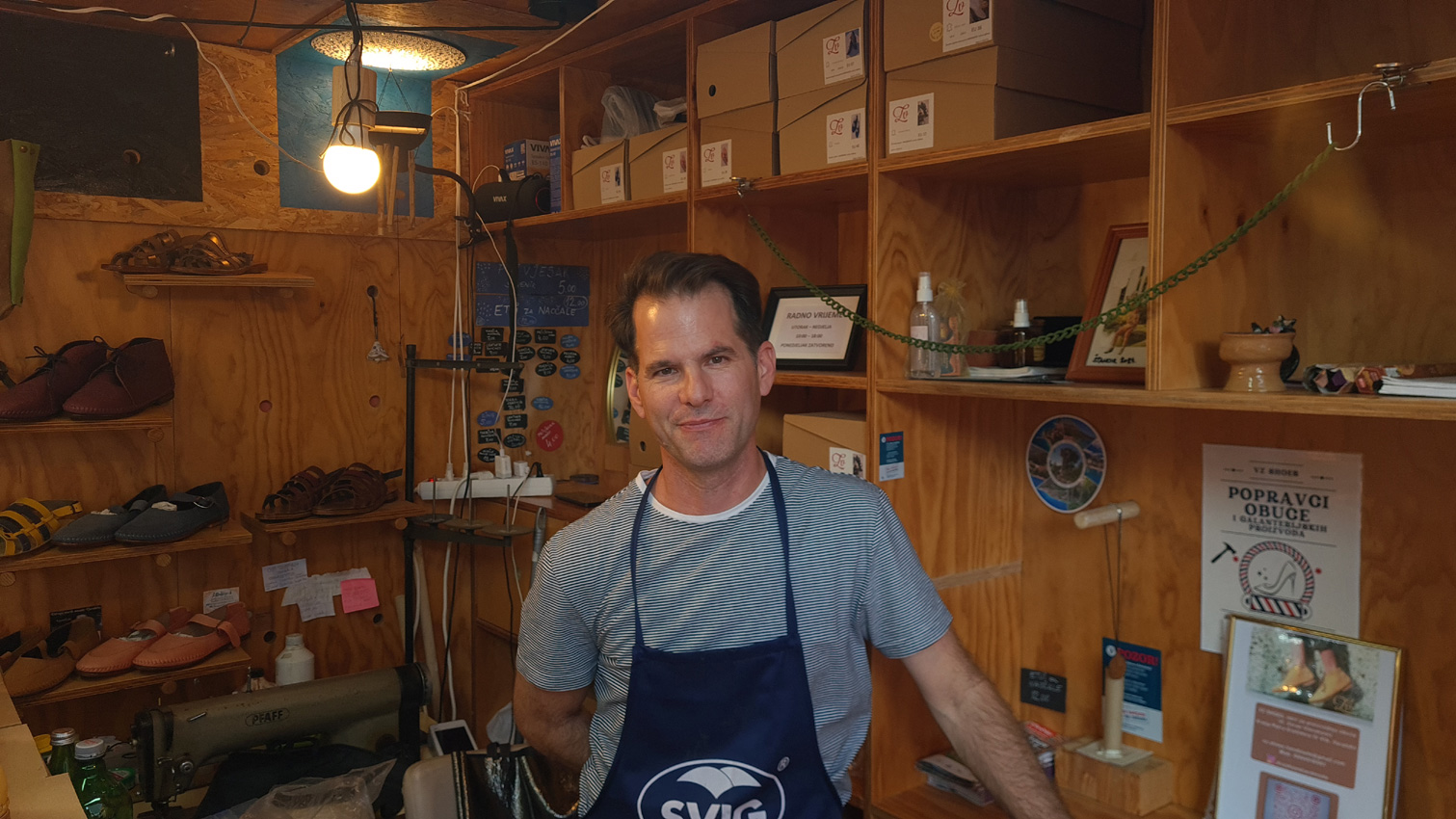 Nedaleko od “glavne prometnice festivala”, u oazi mira Uršulinske ulice, smjestio se Trg tradicijskih obrta. To je mjesto gdje se vrijeme usporava, a zanatska vještina majstora tradicijskih obrta sve stavlja u prvi plan. I upravo tamo, na tom trgu koji je svojevrsni muzej na otvorenom, nalazi se obrtnik koji može biti tamni konjar vaših umornih stopala – vrijedan obućar Zoran Vinceković.